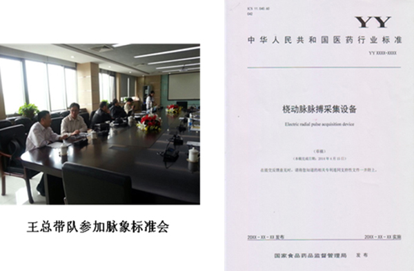 2014年4月,中華人民共和國(guó)醫(yī)藥行業(yè)中醫(yī)診斷行業(yè)標(biāo)準(zhǔn)會(huì)在天津醫(yī)療器械質(zhì)量監(jiān)督檢驗(yàn)中心召開(kāi),公司作為中醫(yī)診斷行業(yè)標(biāo)準(zhǔn)制定方、驗(yàn)證方,董事長(zhǎng)王聯(lián)攜技術(shù)總監(jiān)、產(chǎn)品部經(jīng)理應(yīng)邀參加行業(yè)標(biāo)準(zhǔn)會(huì)議。