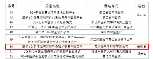 8月17日,中華人民共和國工業(yè)和信息化部官方網(wǎng)站發(fā)布了“5G+醫(yī)療健康應(yīng)用試點(diǎn)項(xiàng)目名單”,由蕪湖圣美孚科技有限公司牽頭,聯(lián)合蕪湖市中醫(yī)醫(yī)院、蕪湖市高科電子有限公司、安徽中醫(yī)藥高等?茖W(xué)校、中國電信股份有限公司蕪湖分公司、天津理工大學(xué)五家單位共同申報(bào)的《基于5G的慢性病防醫(yī)養(yǎng)全程的智慧中醫(yī)應(yīng)用》項(xiàng)目成功入選此次應(yīng)用試點(diǎn)項(xiàng)目名單,也是安徽省入選“5G+中醫(yī)診療”方向名單的項(xiàng)目。